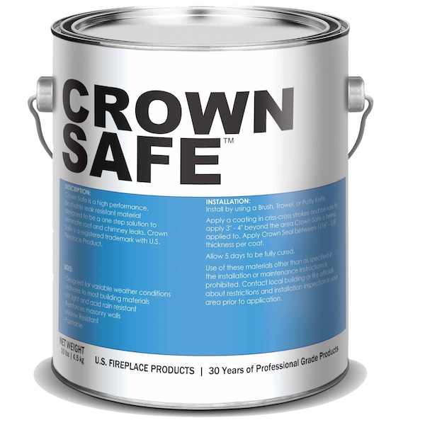 Spread it and forget it! Crown Safe is a high-performing, brushable elastic sealant, with rubber-like flexibility designed to stop water intrusion into masonry chimney crowns, roofs, and various other building surfaces. Crown Safe's fibered formula produces a clear, see-through finish which is extremely flexible and highly resistant to tears, shears, stress, and weathering. The unique properties of this product allow successful application in extreme weather, such as freezing and wet conditions. Preferred by chimney and roofing professionals for its versatility, Crown Safe is the ultimate water intrusion prevention system! Available in conveniently sized one 1 gallon containers, and features better product coverage than the competition at up to 80 sq. feet per gallon! Avoid those costly return visits with this one step, single component, crown repair product and get the job done right, the first time!