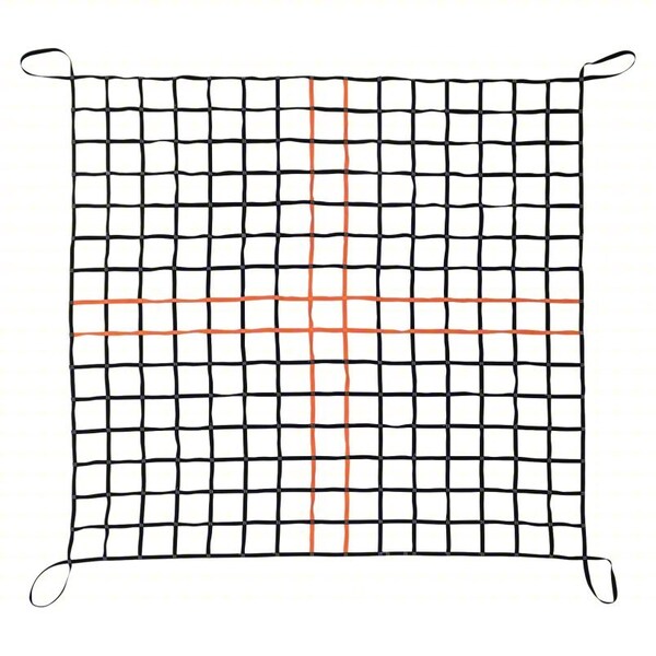 Cargo Lifting Net, Attachment Type Loop, Working Load Limit 500 lb, Number of Attachment Points 4, Number of Load Bearing Straps 4, Opening Size 7 in, Material Polypropylene, Webbing Width 1 in, Overall Length 6 ft, Overall Width 6 in, Color Black, Loop Length 12 in, Standards Not Applicable