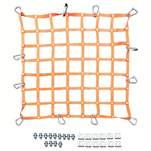Safety Netting System, Mesh Size 5 in, Netting Type Perimeter Netting, Color Orange, Length 5 ft, Net System Component Net, Protection Type Worker, Standards ANSI, OSHA 1910.144, OSHA 1910.145, OSHA 1910.23, OSHA 1926.105, Mounting Orientation Horizontal, Vertical, Includes Mounting Hardware, Includes Mounting Hardware Yes, Material Aluminum, Polyester, Width 5 ft