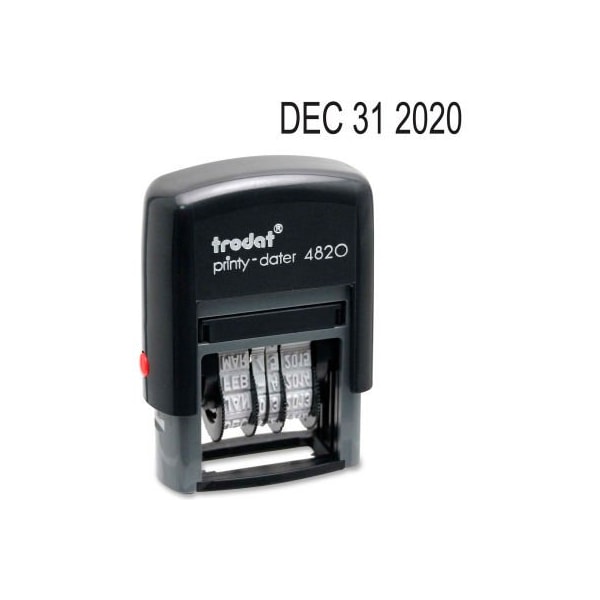 U.s. Stamp & sign trodat self-inking date stamp, 4-band, 3/8" x 1-5/8", black eco-friendly date stamp offers a quick, easy way to stamp documents with the date. Self-inking dater delivers rapid, repeat impressions of the date. Impression size is 3/8" x 1-5/8". Four-band date includes months, days and 10 years. Stamp delivers up to 10,000 impressions and contains a high percentage of recycled material. The frame is made of plastic. larger quantity quotes available. Please call 1-888-978-7759. this product arrives to most customers in 2-3 business days.