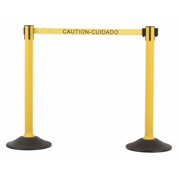 Barrier Post with Belt, Yellow, 77 in Length, 38 1/2 in Post Height, Caution, Unfinished