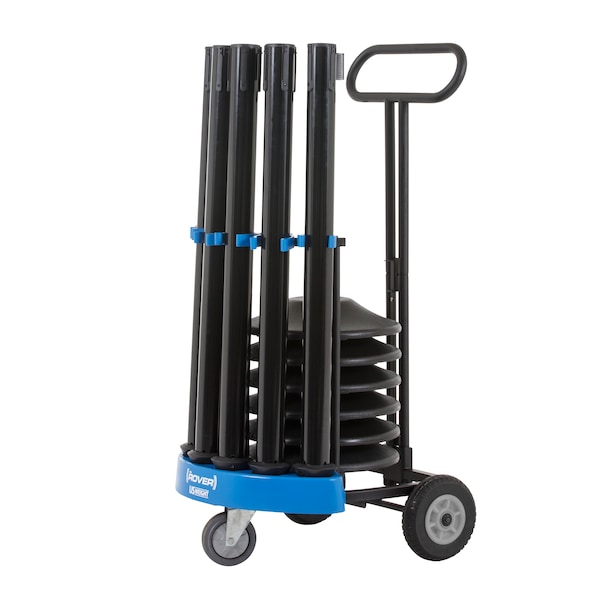 The Rover kit is the ideal cart for anyone who is always on-the-go. This bundle comes with 6 US Weight black Premium Steel stanchions with black belts that can quickly be assembled and deployed with no tools. Its compact size (22” X 22” X 46”) means it can be easily transported to the job site and stored in tight spaces. Its innovative design allows you to roll in 3-wheel cart mode, tip it back and use it as a 2-wheel dolly that can climb stairs or roll it as a wagon.