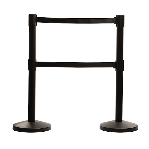 Dual Retractable Belt Barrier Stanchion, 9ft Belts, Black, PR