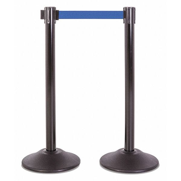 Two black stanchions w/blue belts