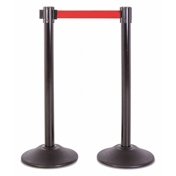 Steel Stanchion,Black,7.5ft,Red Belt,PR, Overall Height 38 1/2 in, Post Diameter 2 1/2 in, Base Diameter 14 1/2 in, Fillable Yes, Post Material Steel, Post Color Black, Includes Spring Safety Locking Button, Product Type Stanchion, Indoor/Outdoor Usage Indoor, Base Material Polyethylene, Color Black, Resistance Properties Scratch Resistant, Manufacturer Warranty Length 3 yr, 1 Pair