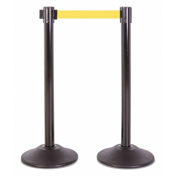 Steel Stanchion,Blk,7.5ft,Yellow Belt,PR, 1 Pair