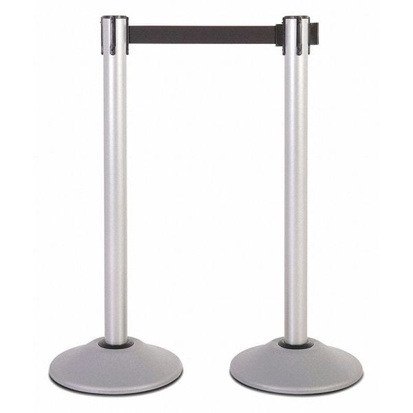 Steel Stanchion,Silver,13ft,Blk Belt,PR, Overall Height 38 1/2 in, Post Diameter 2 1/2 in, Base Diameter 14 1/2 in, Fillable Yes, Post Material Steel, Post Color Silver, Includes Spring Safety Locking Button, Product Type Stanchion, Indoor/Outdoor Usage Indoor, Post Finish Satin Chrome, Base Material Polyethylene, Color Silver, Resistance Properties Scratch Resistant, Manufacturer Warranty Length 3 yr, 1 Pair