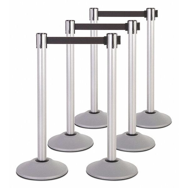 Steel Stanchion,Silver,7.5 ft Belt,PK6, Package Quantity 6