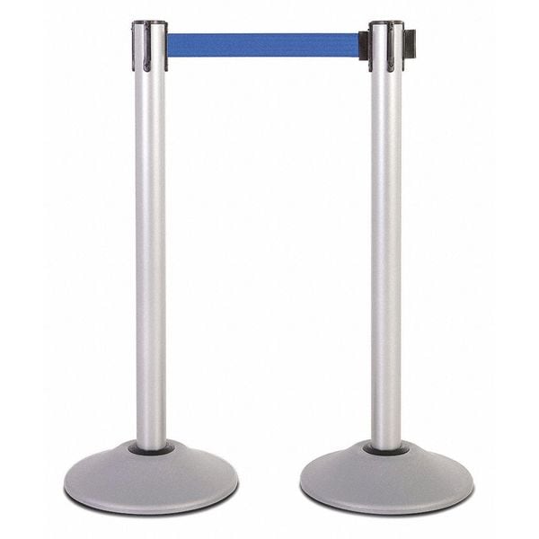 Steel Stanchion,Silver,7.5ft,Blu Belt,PR, 1 Pair