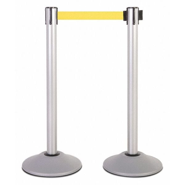 Steel Stanchion ,Silver,7.5ft,Yl Belt,PR, 1 Pair