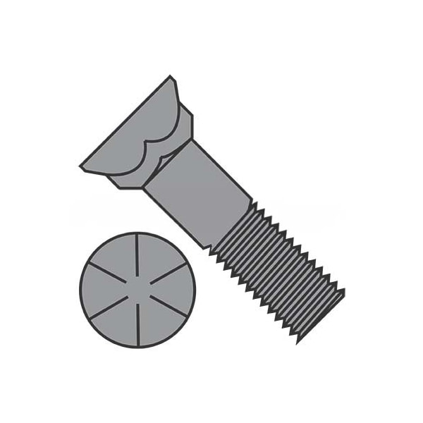 Plow Bolt, 3/4"-10 Thrd Sz, 5" L, Flat Head, Steel, Plain