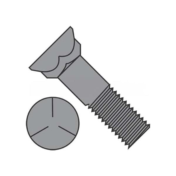 Plow Bolt, 3/8"-16 Thrd Sz, 1" L, Flat Head, Steel, Plain