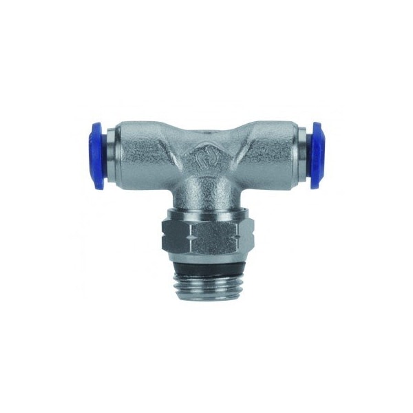 Push to Connect Tube Fitting, Nickel Plated Brass w/ Plastic Release Ring, Male Branch Tee