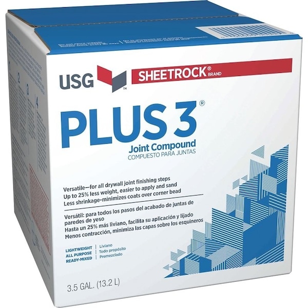This all-purpose compound weighs up to 30% less than conventional-weight compounds so handling and applying are simpler, easier and faster. Sheetrock® brand Plus 3® joint compound offers all the benefits of conventional-weight compound but results in less shrinkage and is easy to sand. Use Sheetrock® brand Plus 3® joint compound for embedding paper joint tape and finishing gypsum panel joints or simple hand-applied texturing.