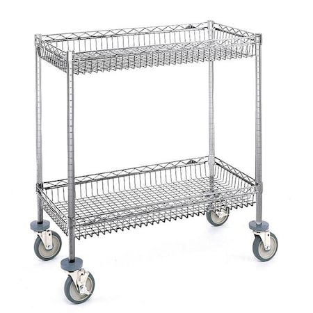 Raised Handle Deep Shelf Utility Cart, Steel, 80 lb Load Capacity, 2 Shelves, 22 1/2 in L, 21 in W