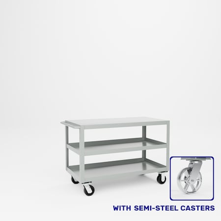 Raised Handle Utility Cart, Steel, 2400 lb Load Capacity, 2 Shelves, 53 1/2 in L, 24 in W