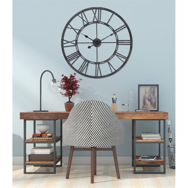 27 in. Oversized Roman Round Wall Clock, Matte Black (Discontinued)