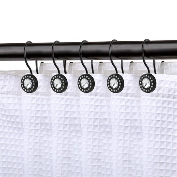 Crystal Design Rust Resistant Double Shower Curtain Hooks Ring for Bathroom, Matt Black - Set of 12
