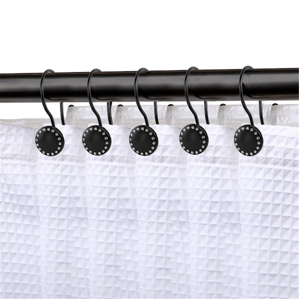 Rust Resistant Double Shower Curtain Hooks Ring for Bathroom, Matt Black - Set of 12