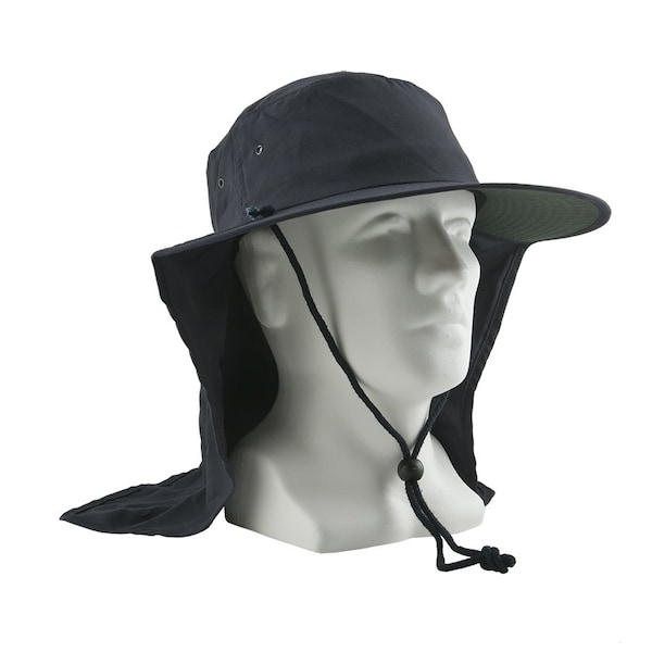 The Tanami Hat is a lightweight cool hat with a wide brim, long tail and soft toweling sweatband to provide face and neck UV protection.