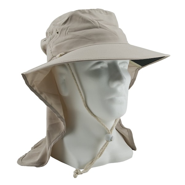 The Tanami Hat is a lightweight cool hat with a wide brim, long tail and soft toweling sweatband to provide face and neck UV protection.