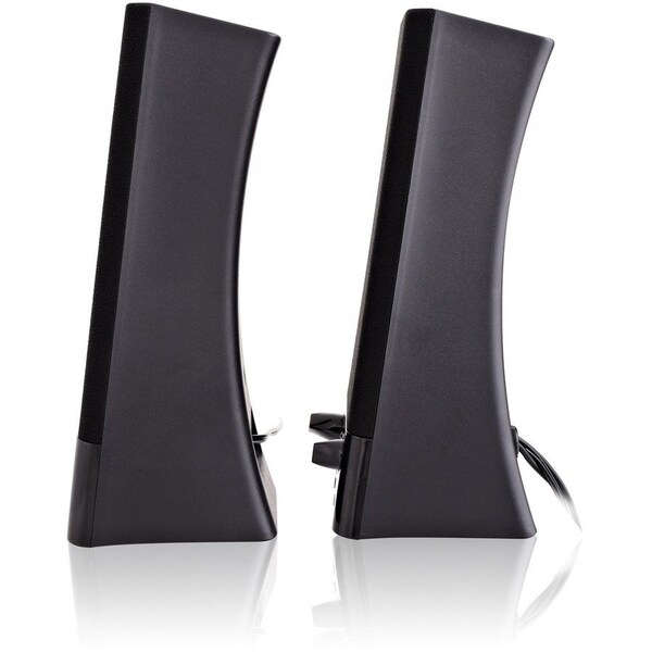 - Ideal for desktop computers and laptops alike, this compact speaker system delivers clear highs and lows in a glossy sleek, stylish design