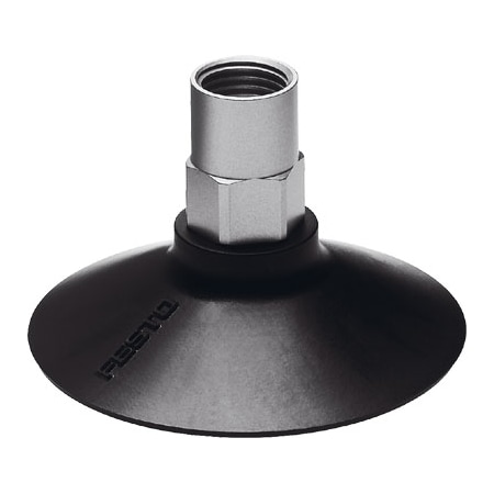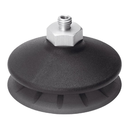 Vacuum pads work as industrial suction cups on pneumatic absorption transfer systems. The vacuum suction cup can install onto the robotic arms of the assembly line in order to help lift and transport objects and pieces. We have suction pads that are a deep style, or are flat, or flat with ribs. Some have bellows, but all of these pads come in a variety of different heights and diameters. This vacuum suction selection contains different rubber construction for your preference. We carry other vacuum parts for pneumatic systems that include vacuum pad adaptors with male and female ports. The vacuum suction filters help filter out dirt and debris. Our vacuum buffers help with shock absorption, and the vacuum regulators help maintain the proper pressures.