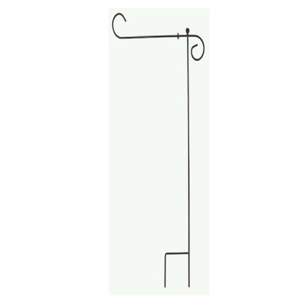 This 1-piece wrought iron garden flag holder measures 18 in. by 45 in. when assembled. This garden flag holder is designed to display a sleeved garden banner flag.
