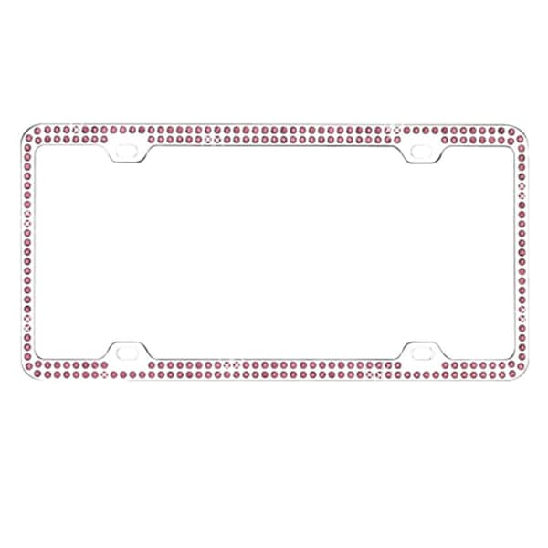 Purple Crystals Chrome Coating Metal License Plate Frame with Double Row Crystals