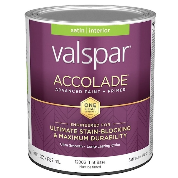 Accolade 1200 Latex Paint, Acrylic Base, Satin, Tint Base, 1 qt, Plastic Can