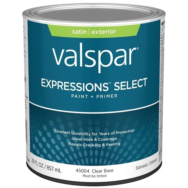 Expressions Select 4500 Latex Paint, Acrylic Base, Satin Sheen, Clear Base, 1 qt