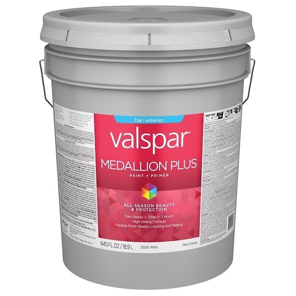 Medallion Plus 2500 Latex Paint, Acrylic Base, Flat Sheen, White Base, 5 gal, Plastic Pail