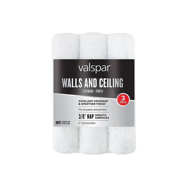 Valspar Paint Roller Cover, 3/8 in Thick Nap, 9 in Length, Microfiber Cover, 1-1/2 in Core, Plastic Core, Smooth, Textured Surface, Chalky, Latex, Oil-Based Paint, Shedless: Yes