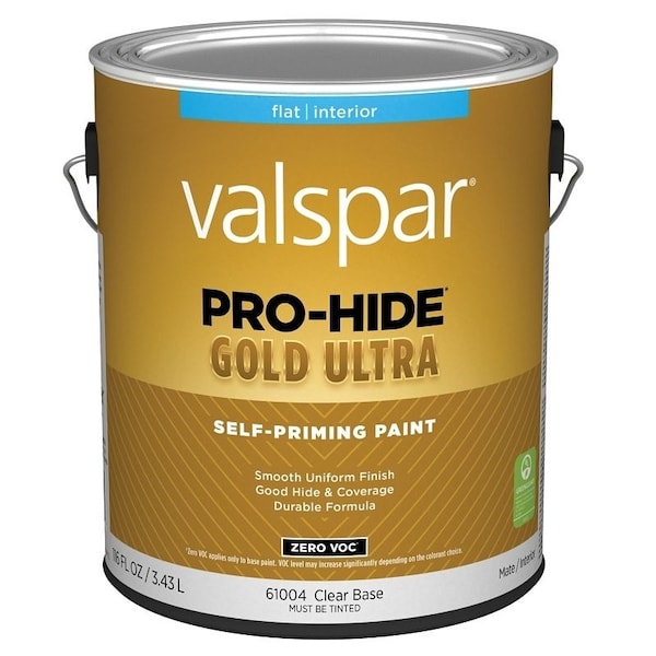 Pro-Hide Gold Ultra 6100 Latex Paint, Acrylic Base, Flat Sheen, Clear Base, 1 gal