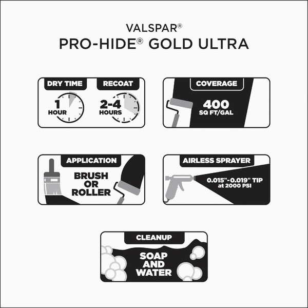 Formulated to provide beautiful results and reliable performance. Its a top-of-the-line professional quality paint that delivers a uniform finish with outstanding hide smooth application and exceptional touch-up. It is ideal for residential/commercial repaints and new construction. MPI approved for gloss levels 1-5. Dries to touch in 30 minutes re-coat in 4 hours. Coverage is 400 Sq. Ft. per gallon.