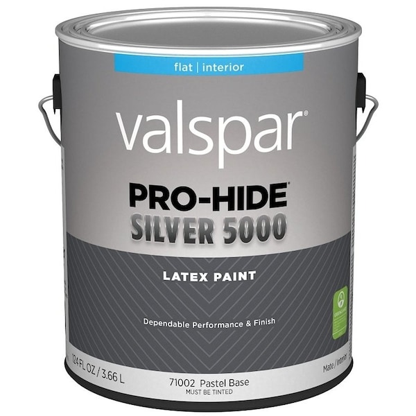 Pro-Hide Silver 5000 7100 Latex Paint, Water Base, Flat, Pastel Base, 1 gal