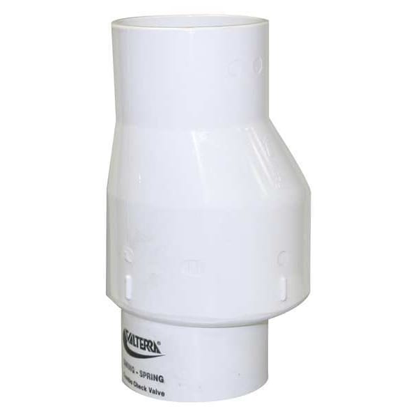 Item - Check Valves Check Valve, Flow Design Single, Mechanism and Body Design Inline Spring Swing, Body Material - Valves PVC, Pipe or Tube Size 3 in, Connection Type Slip x Slip, Cracking Pressure 0.5 psi, Mounting Orientation Horizontal, Vertical, Seal Material NBR, Max. Temp. - Valves 73 Degrees F, Min. Temp. - Valves 35 Degrees F, Max. Water Pressure - Valves 75 psi, Max. Steam Pressure - Valves Not Rated, Seat Material PVC, Spring Material Stainless Steel, Flow - Valves 18 gpm
