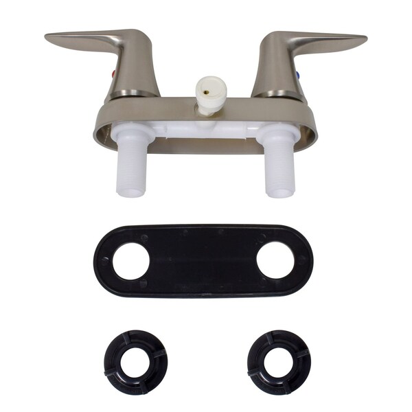 2 Valve; Single Piece Wall Mount; 4 Inch; 2 Lever Handles; Brushed Nickel; Plastic Underbody; With Vacuum Breaker To Attach Hand-Held Shower Hose; With Individual Box
