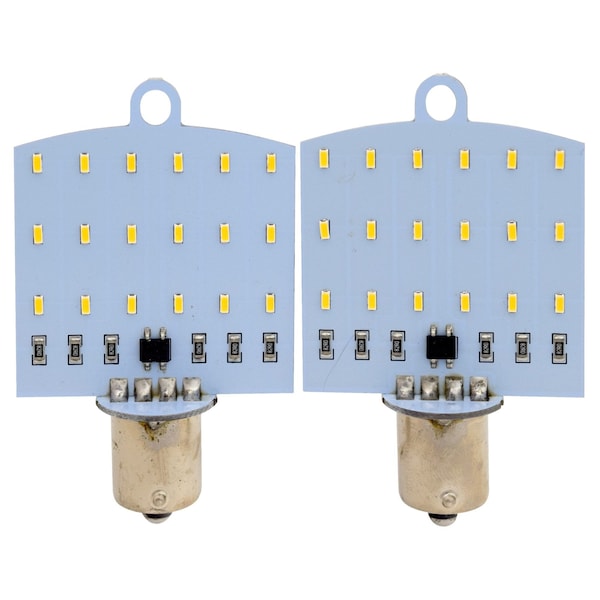 Replacement For 1141/ 1156 Bulbs; LED Flat Bulb; Warm/ Soft White; 180-Lumen/ 3500K/ 0.12-Amp/ 20 Watt Equivalent; Overhead/ Top Mount; Built-In Surge Protection; Pack Of 2; Retail Package