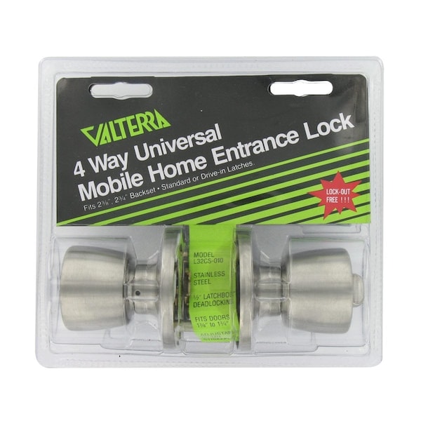 DOOR LOCK, ENTRANCE, 4-WAY UNIVERSAL, KNOB X KNOB, SS, CLAM SHELL