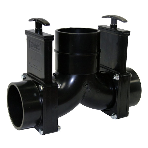 ELL DOUBLE ROTATING VALVE, 3IN HUB X 3IN HUB X 3IN HUB OUTLET