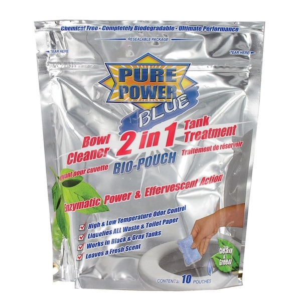 Blue; Biological Treatment Used To Break Down Waste and Tissue; Without Formaldehyde; Fresh Clean Scent; Without Lubricant; Treats 40 Gallon Black or Gray Water Holding Tank; Individual Drop-In Treatments; Package of 10 Drop-Ins