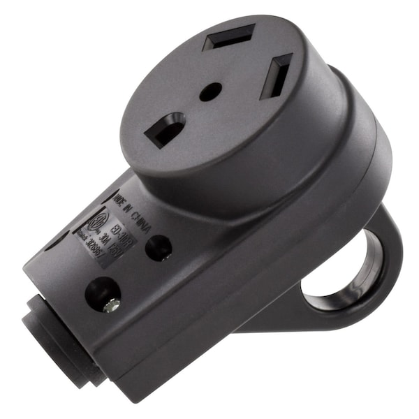 Replacement Receptacle Connector; 30 Amp; Female End; With Plug Head Handle; Black; With Retail Package