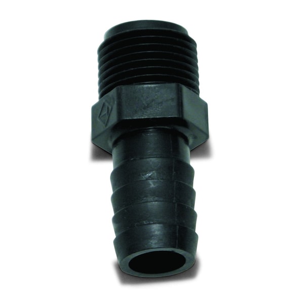 Male Adapter; 3/8 Inch Male NPT x 1/2 Inch Barb; Plastic; Without Retail Package