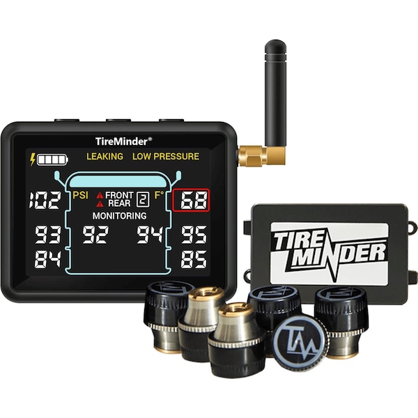 Universal Fit; 6 Standard Transmitters; With 3.15 Inch Diagonal LCD Monitor; With Audio And Visual Alerts; Without Parking Aid System; With RHINO Signal Booster/ 6 Transmitters/ 1 Micro USB Cable And DC Adapter/ 6 Locking Nuts/ Locking Wrench With Valve Core Tool/ 6 Extra O-rings/ 12 CR1632 Batteries/ 1 Mounting Bracket/ Manual/ Warratny Card; IPX7 Compliant Waterproof Sensors