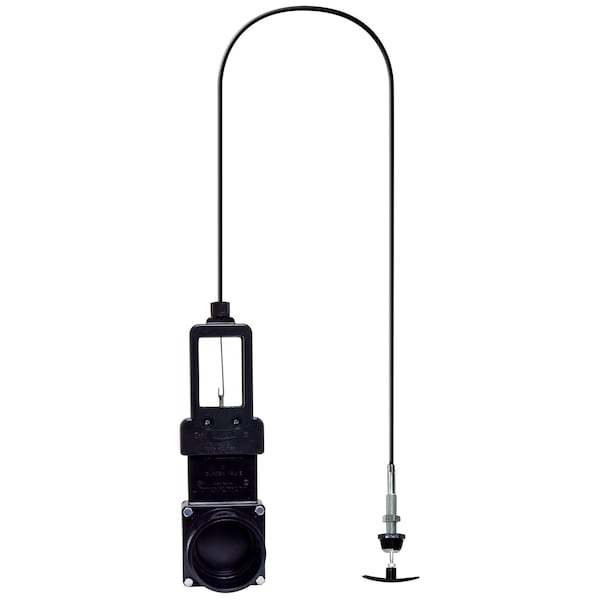 Waste Valve For RV Black Water System; Cable Actuated; Standard Straight Valve; 3 Inch Waste Valve; With 3 Inch Spigot x 3 Inch Spigot; With Handle and Pre-Attached 96 Inch Cable; Without Cap; Without Coupler