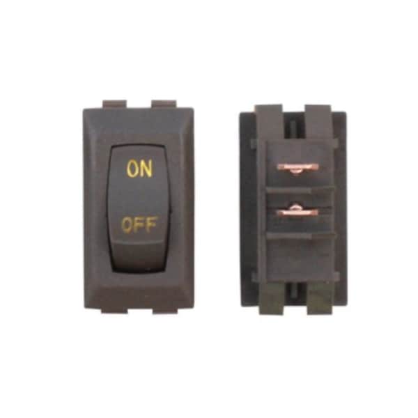 16 Amp At 125 Volt AC/ 3/4 HP/ UL/ CSA/ VDE; Rocker; Single Pole Single Throw; 1.125 Inch x 0.55 Inch Cutout Size; Non-Lighted; Brown/ Gold Color Letters; Brown Panel; 1 Per Card