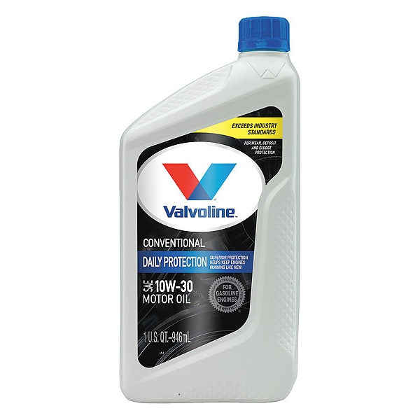 Engine Oil, Series Daily Protection, Container Size 1 qt, Compatible Vehicle Type Cars, Light Duty Trucks, Base Formulation Conventional, SAE Viscosity Grade 10W-30, Standards API, SAE, Additives Included Detergents, Color Amber, Compatible Engine Type Gasoline Engines, Container Type Bottle, Detergent Detergent Oil, Features All Climate, Flash Point 420.8 Degrees F, ISO Viscosity Grade Not Specified, Maximum Operating Temperature 220 Degrees F, Minimum Operating Temperature -30 Degrees F