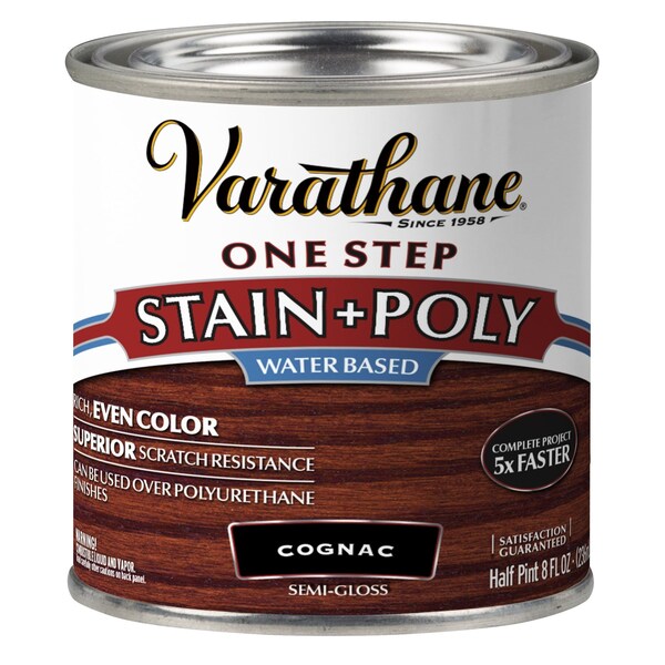 Varathane One Step Stain & Polyurethane is a water-based acrylic oil-modified urethane designed to stain and protect wood surfaces in one easy application. By combining a stain with polyurethane, the need for multiple product application is eliminated. Varathane One Step Stain & Polyurethane adds rich color and a smooth protective finish. It has fast dry, low odor, and the convenience of soap and water clean-up. It is suitable for use on interior wood furniture, trim, cabinets, and doors.