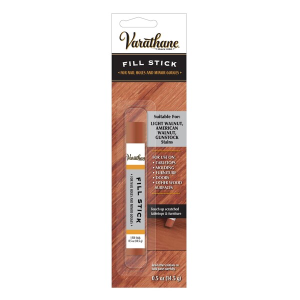 Varathane Fill Sticks are a quick and easy way to repair scratches, nicks, dents or other minor imperfections in any wood surface. They are suitable for touching up furniture, cabinets, trim, doors and floors. They can be used to complement Varathane Premium Wood Stains or you can blend different Fill Sticks to create custom colors.